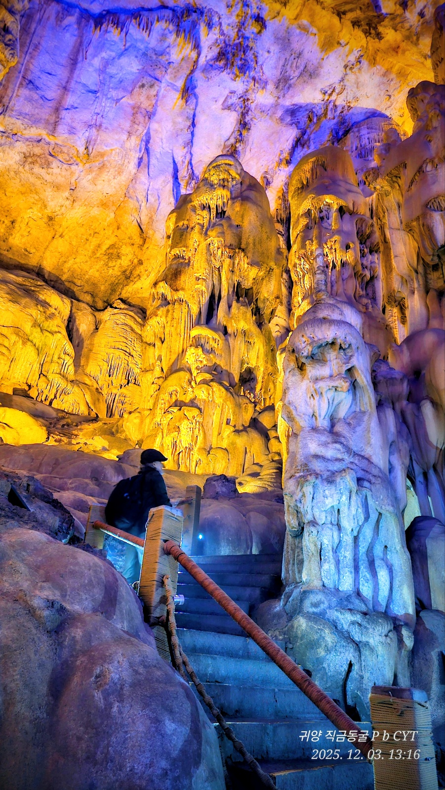 직금동굴은 내가 본 동굴(국내, 베트남, 장가게, 인도네시아) 중에서 규모, 길이, 높이에서 앞도했다. 장관이다. 내가 우주 어느 공간에 불시착 했나 잠시 착각이 든다. 지형지물에 조명을 배치한 기술과 표현 능력이 어느 동굴보다 우수하다. 종류석과 석순은 물론 자연이 아니면 이런 창작물을 만들 수 있을까? 말로 다 표현하기 어렵다. 직접 봐야 한다. 수억년의 세월이 동굴에 있다. 살아있는 경이로운 지구의 모습을 본다. 우주공간을 폰에 담아보고 싶었는데 한계가 있다. 그 경이로운 경관은 아직 머리에 남아있다.